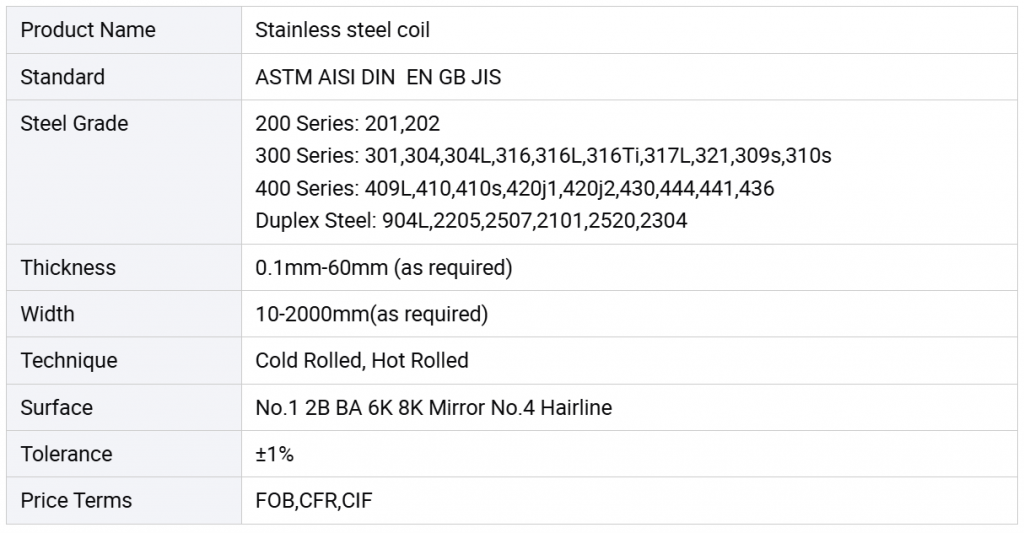 Formed coils of 304 and 304L stainless steel are primarily classified as hot-rolled coils (HRC) and cold-rolled coils (CRC).