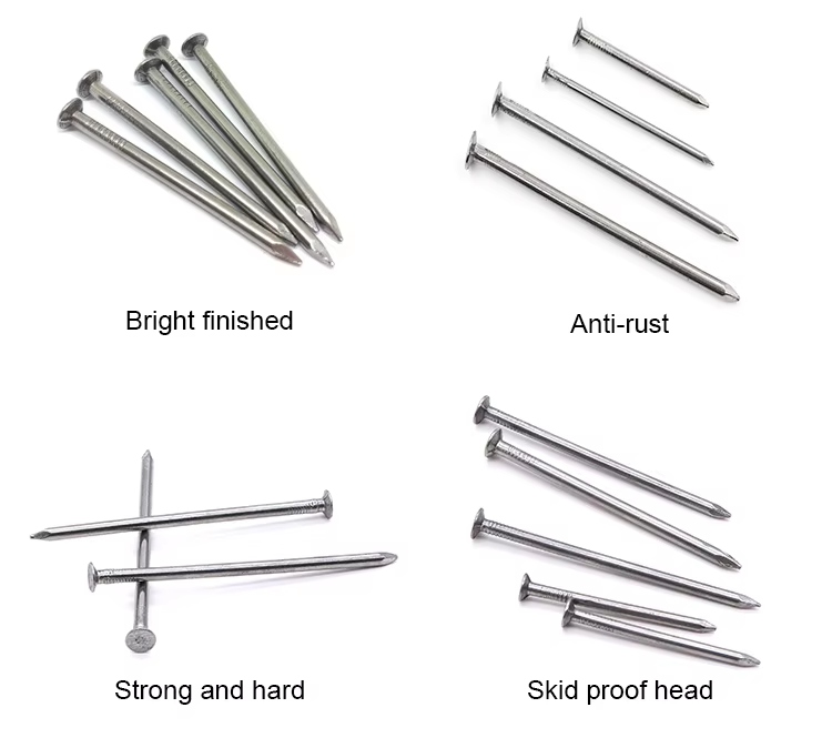 Hardware nails refer to a hard metal with a pointed headand are one of the most common things in decoration.Usually made of carbon steel, iron, and copper.The colors are generally divided intoblack, silver, gold, copper, bronze, etc.