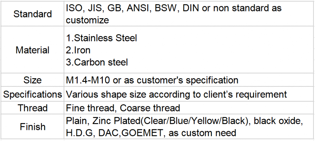 Standard: ISO, JIS, GB, ANSI, BSW, DIN or non standard as customize